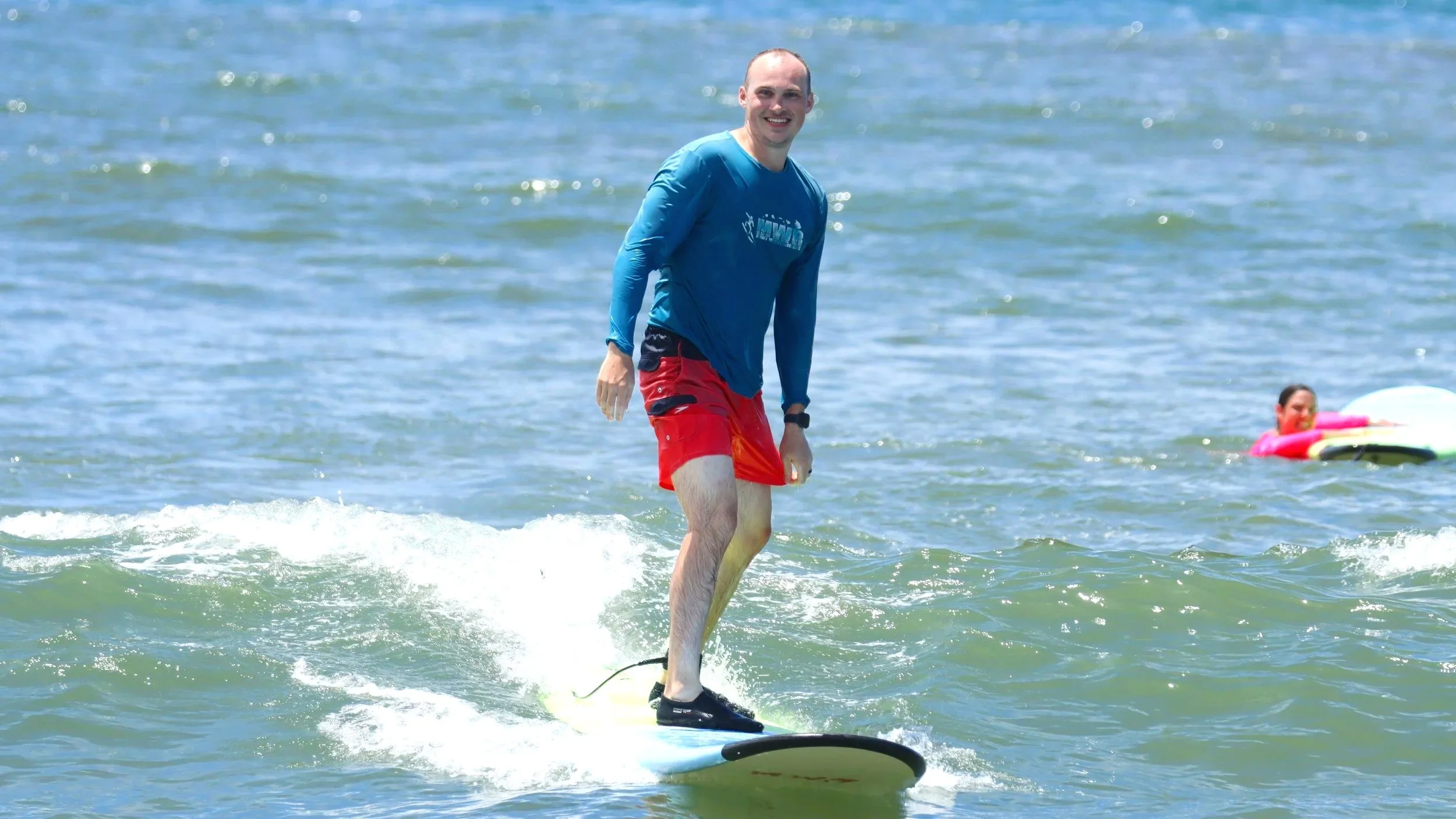 I learned to stand on the board (“eyes up!!”), turn, and paddle back to the start of the waves. I’ll admit, I was pretty terrible, but I did manage to ride a couple waves and had so much fun learning a new skill! To top off the experience, we saw a sea turtle swimming near us and a photographer on the beach captured photos of us surfing that we were able to purchase.